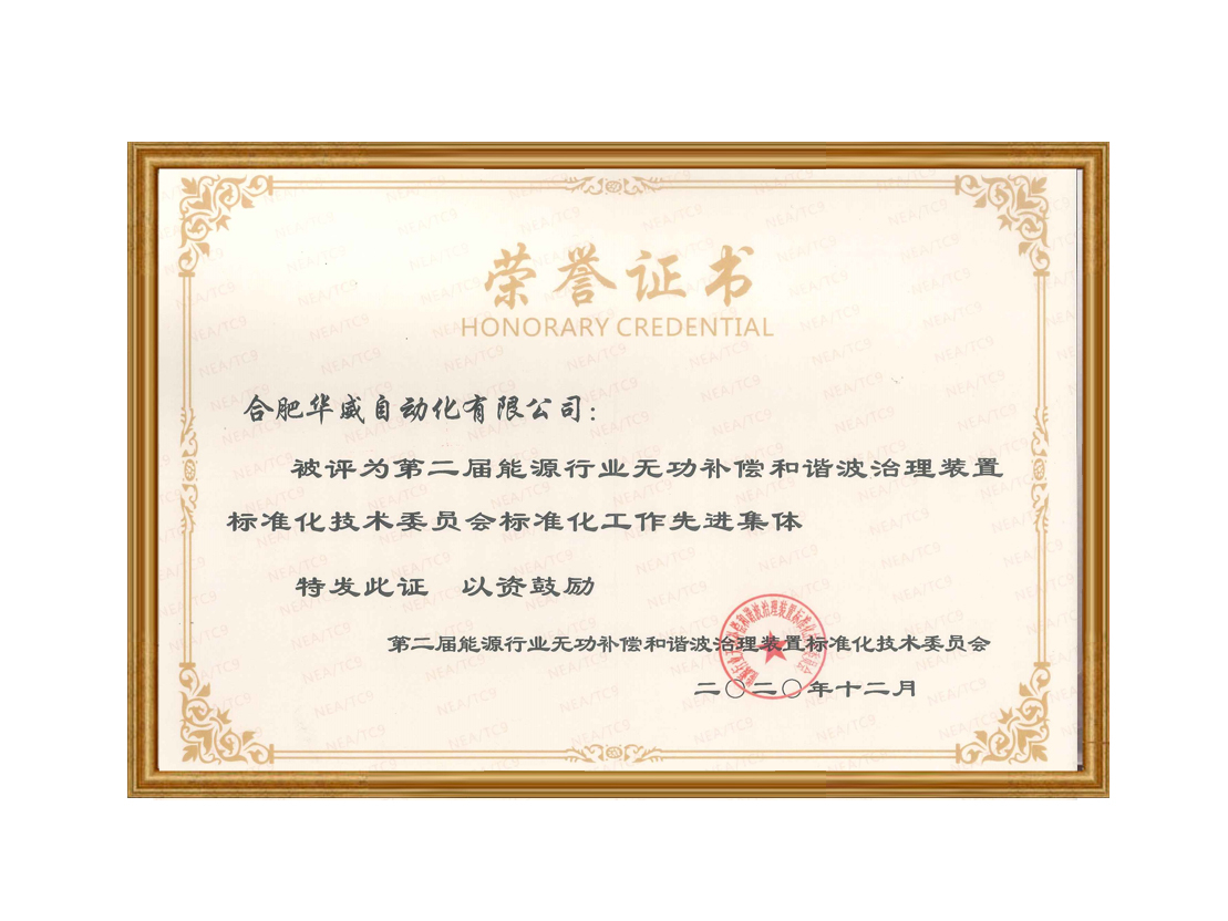 第二届能源行业无功补偿和谐波治理荣誉证书