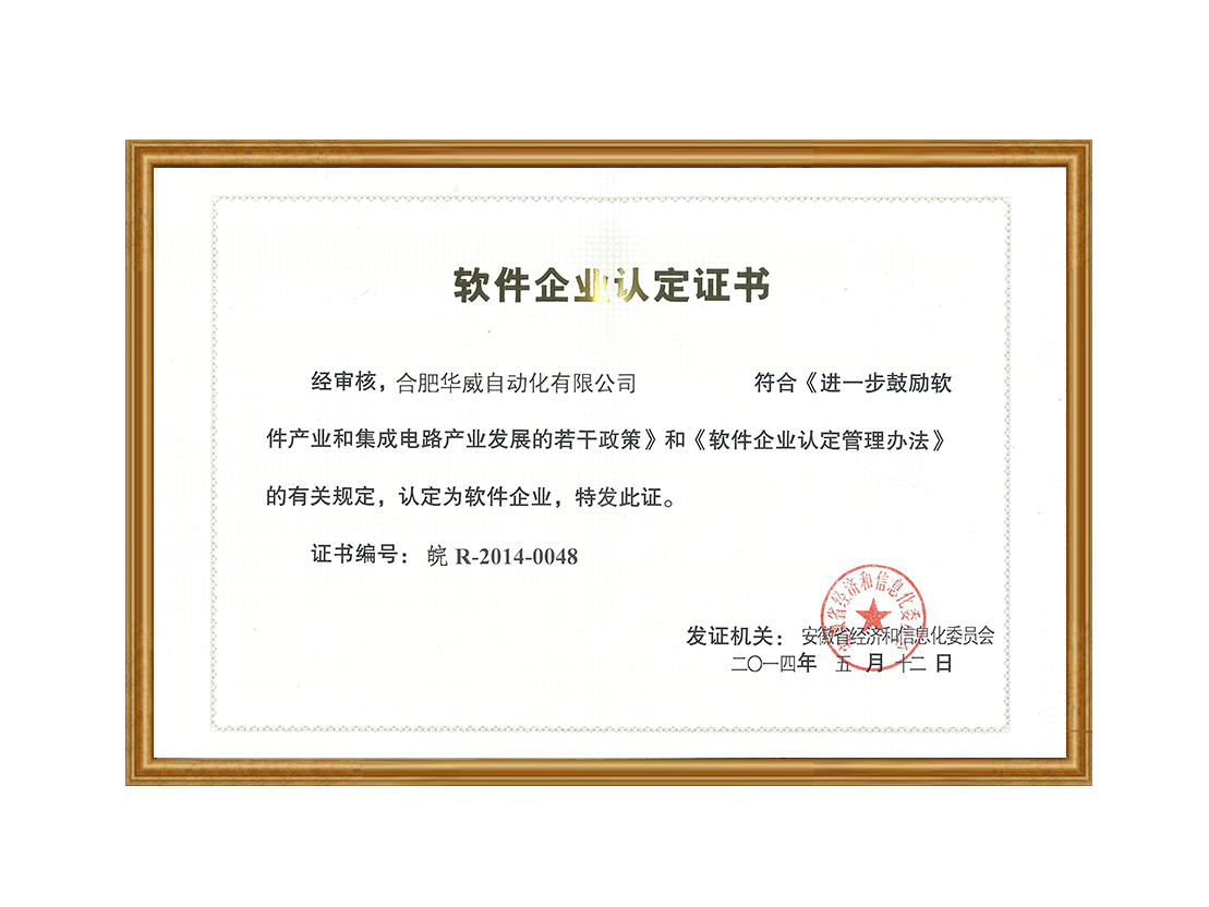 软件企业认定证书